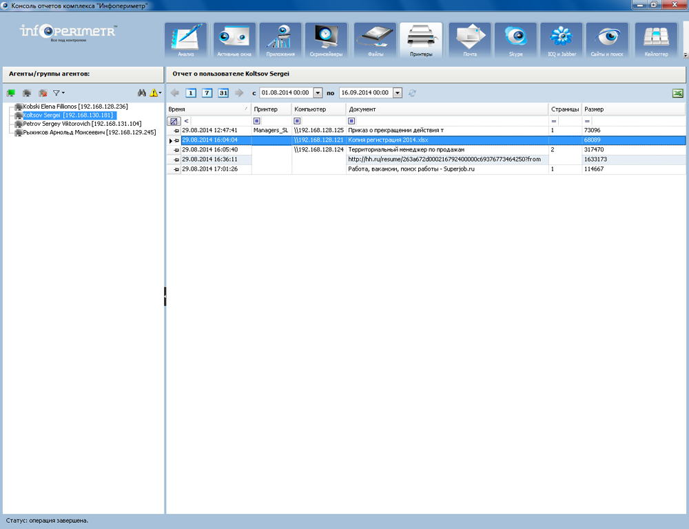 Для этих целей используется программа скрытого наблюдения за компьютером ИНФОПЕРИМЕТР, основной задачей которой является контроль информационных потоков и своевременное уведомление о критических событиях.